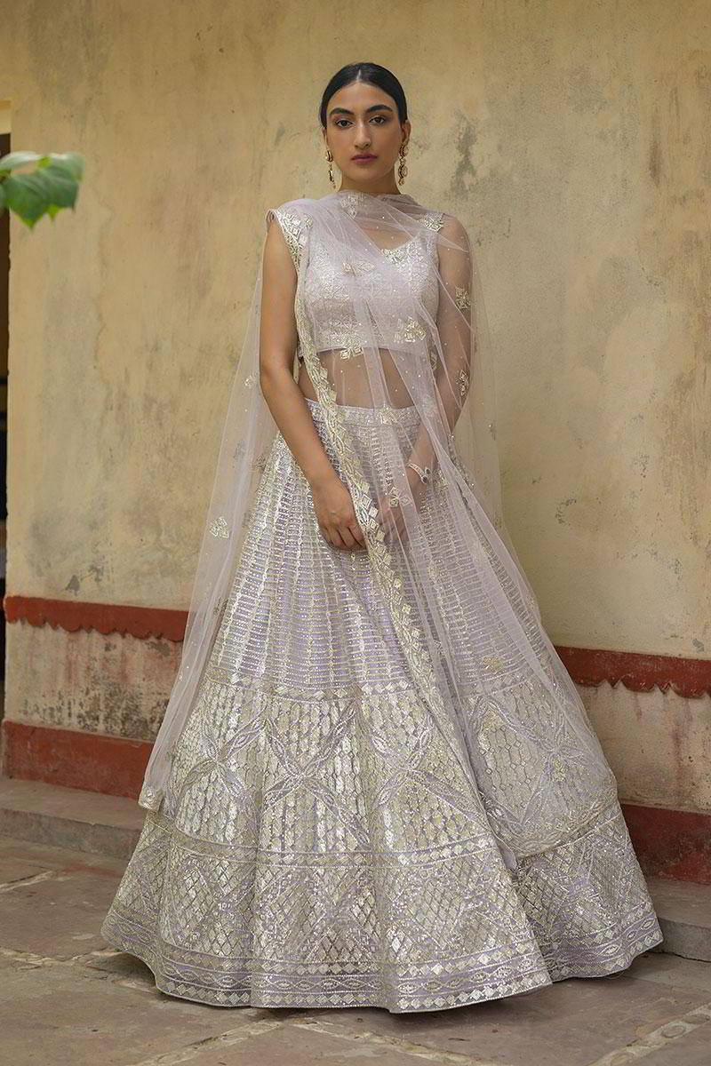 Lavender Net Lehenga Set