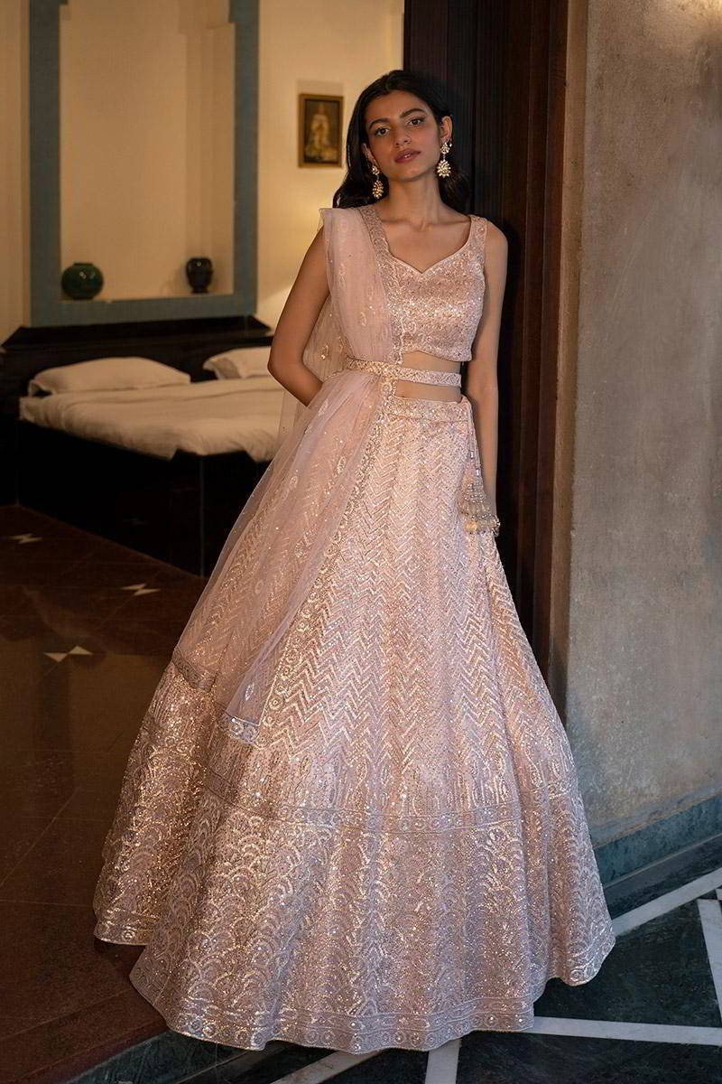 Blush Pink Net Lehenga Set