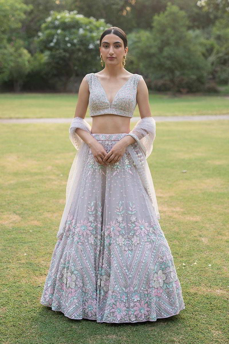 Grey Organza Lehenga Set