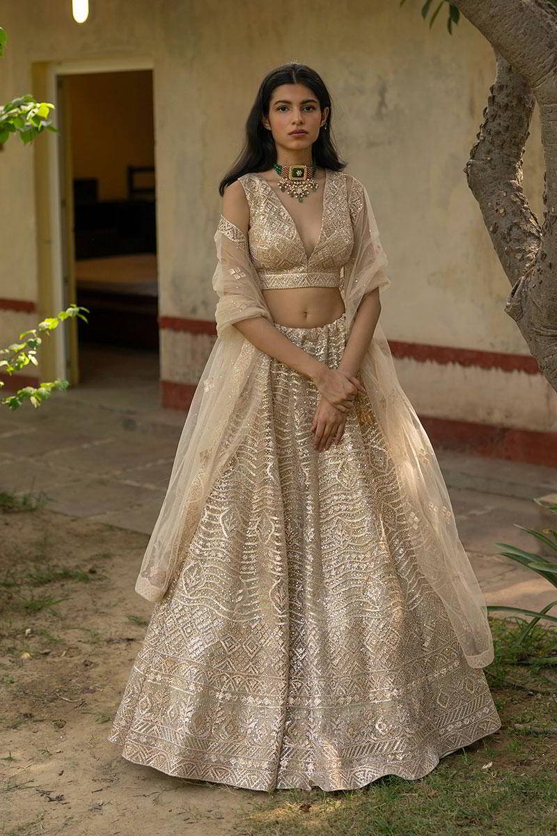 Gold Net Lehenga Set
