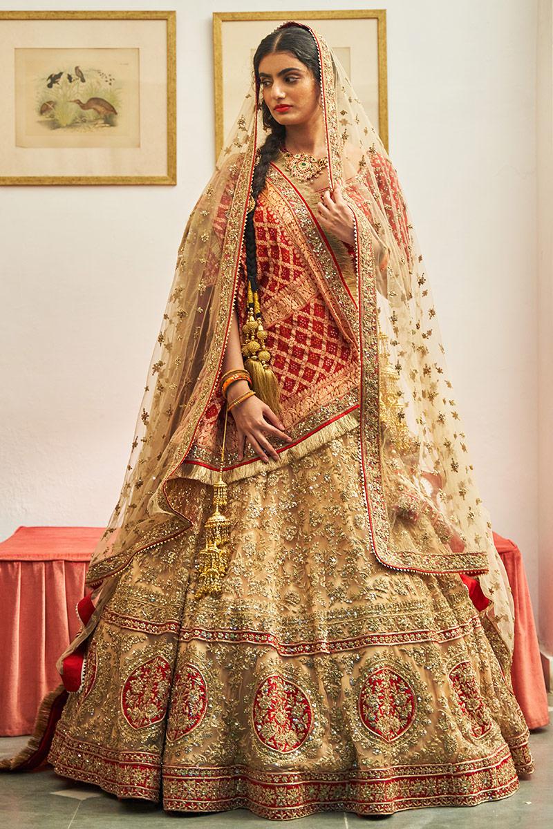 Nude Raw Silk Double Dupatta Lehenga Set