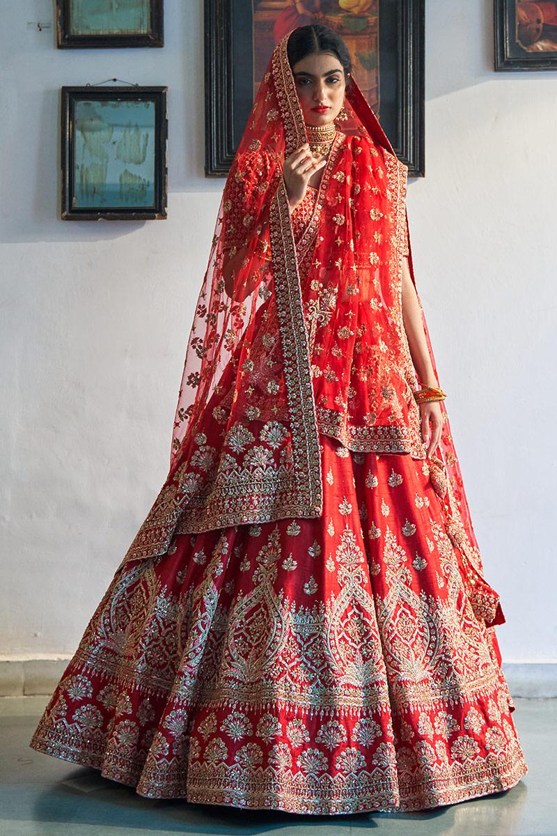 RED RAW SILK LEHENGA SET