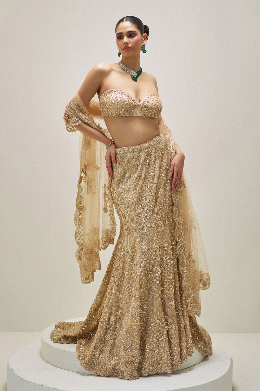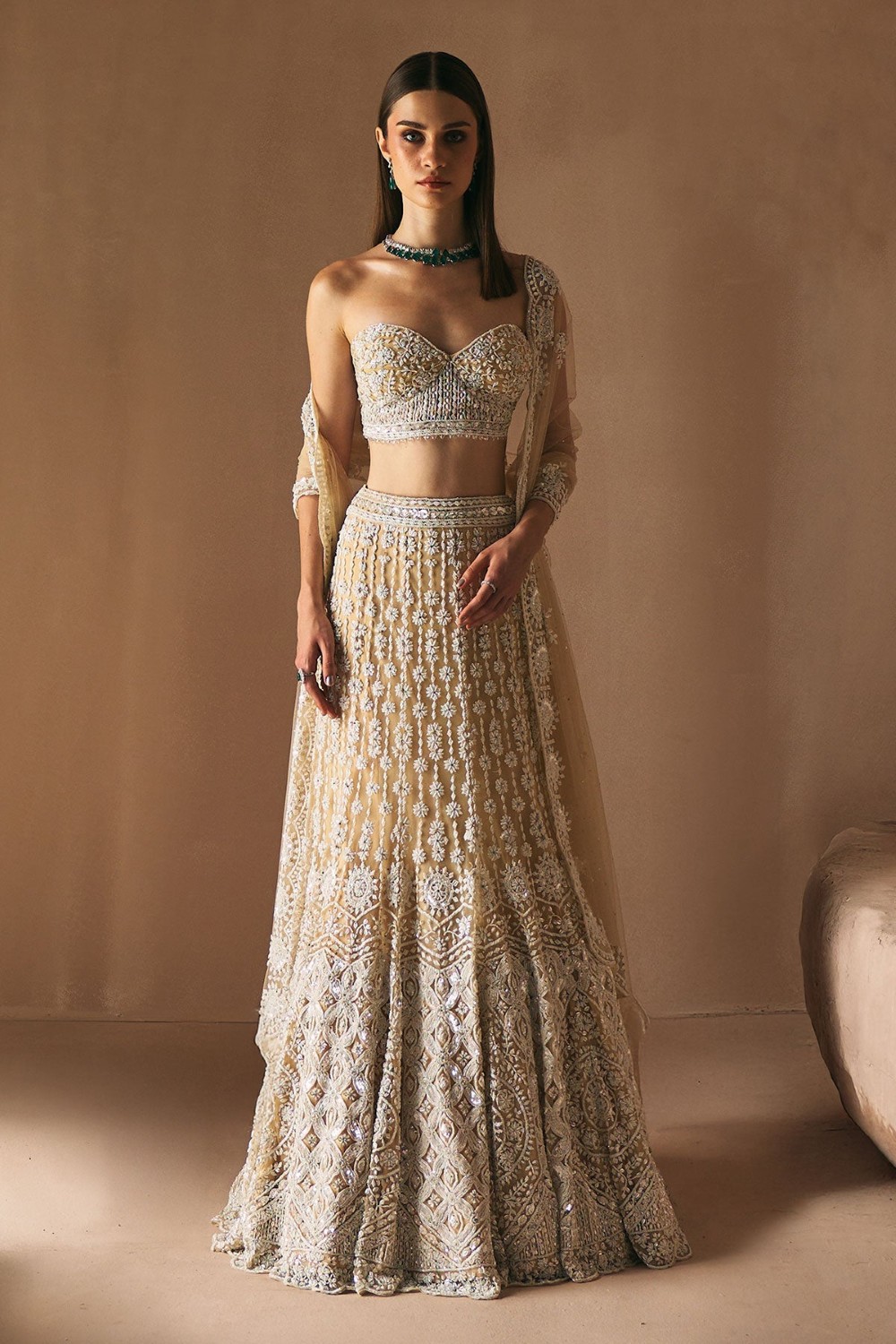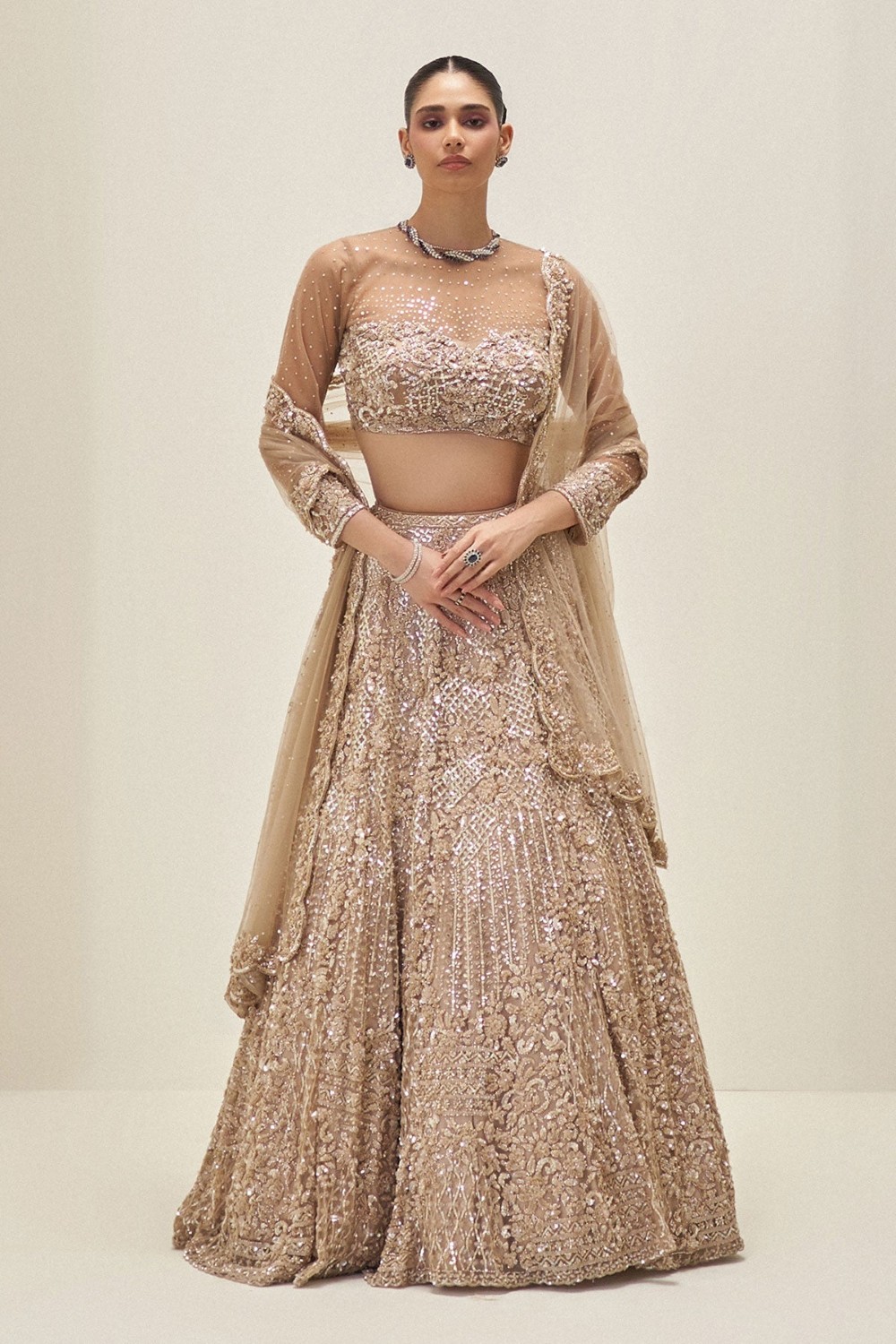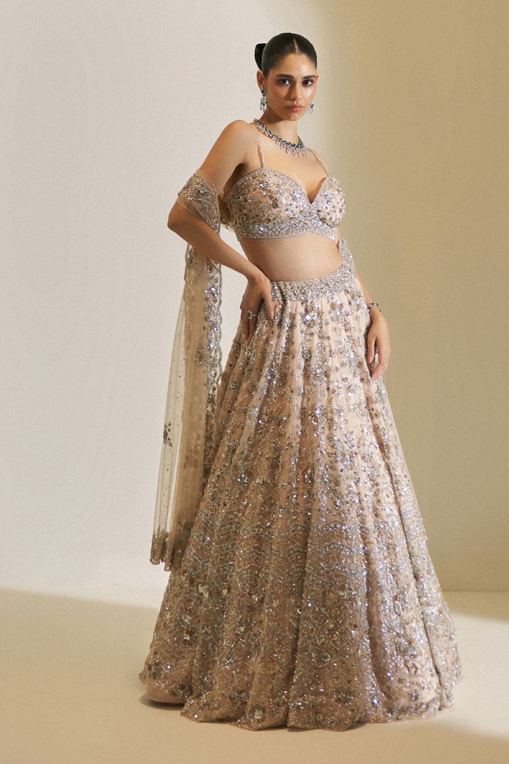 Champagne Crystal Bloom Lehenga Set