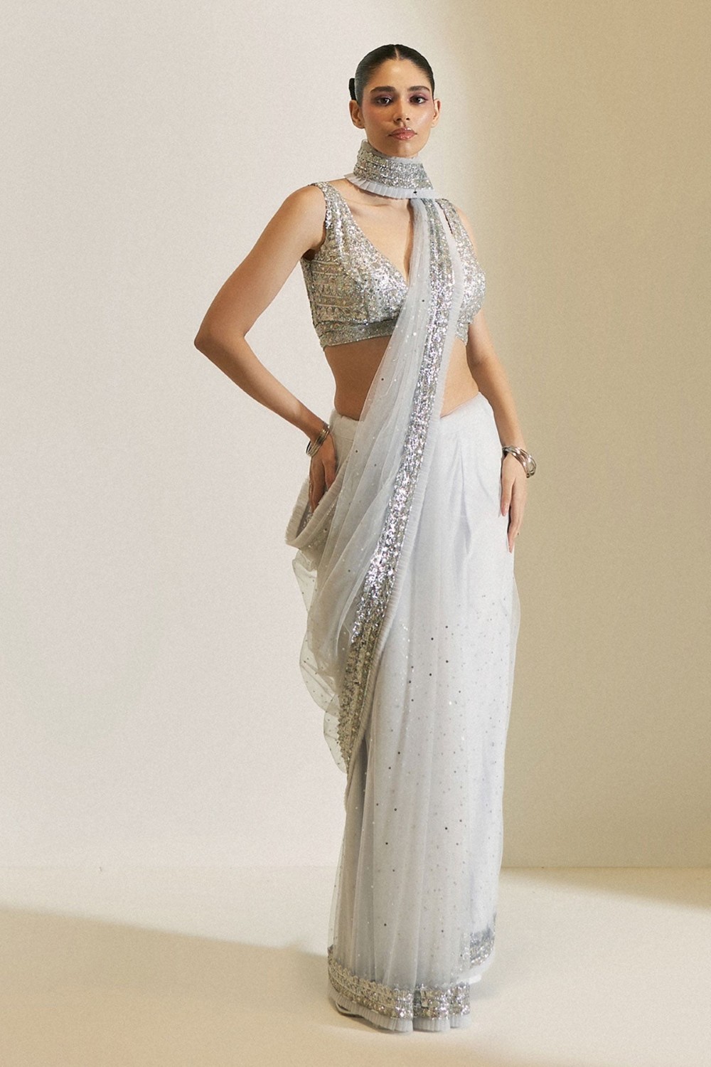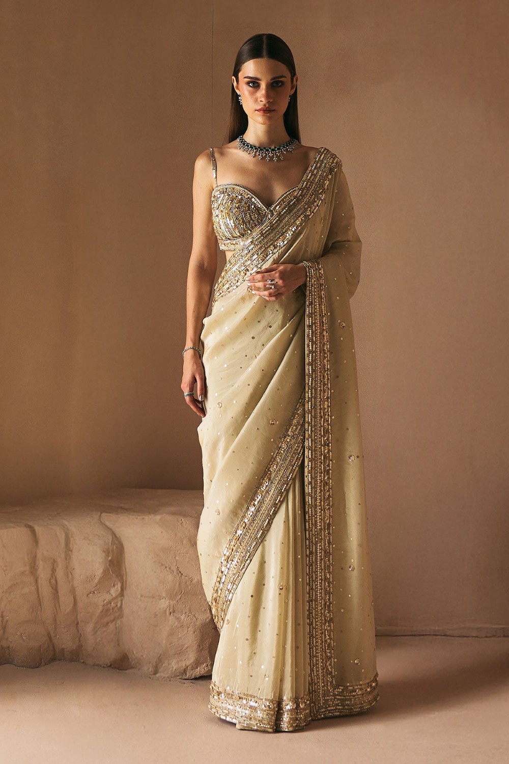 Champagne Stardust Saree Set