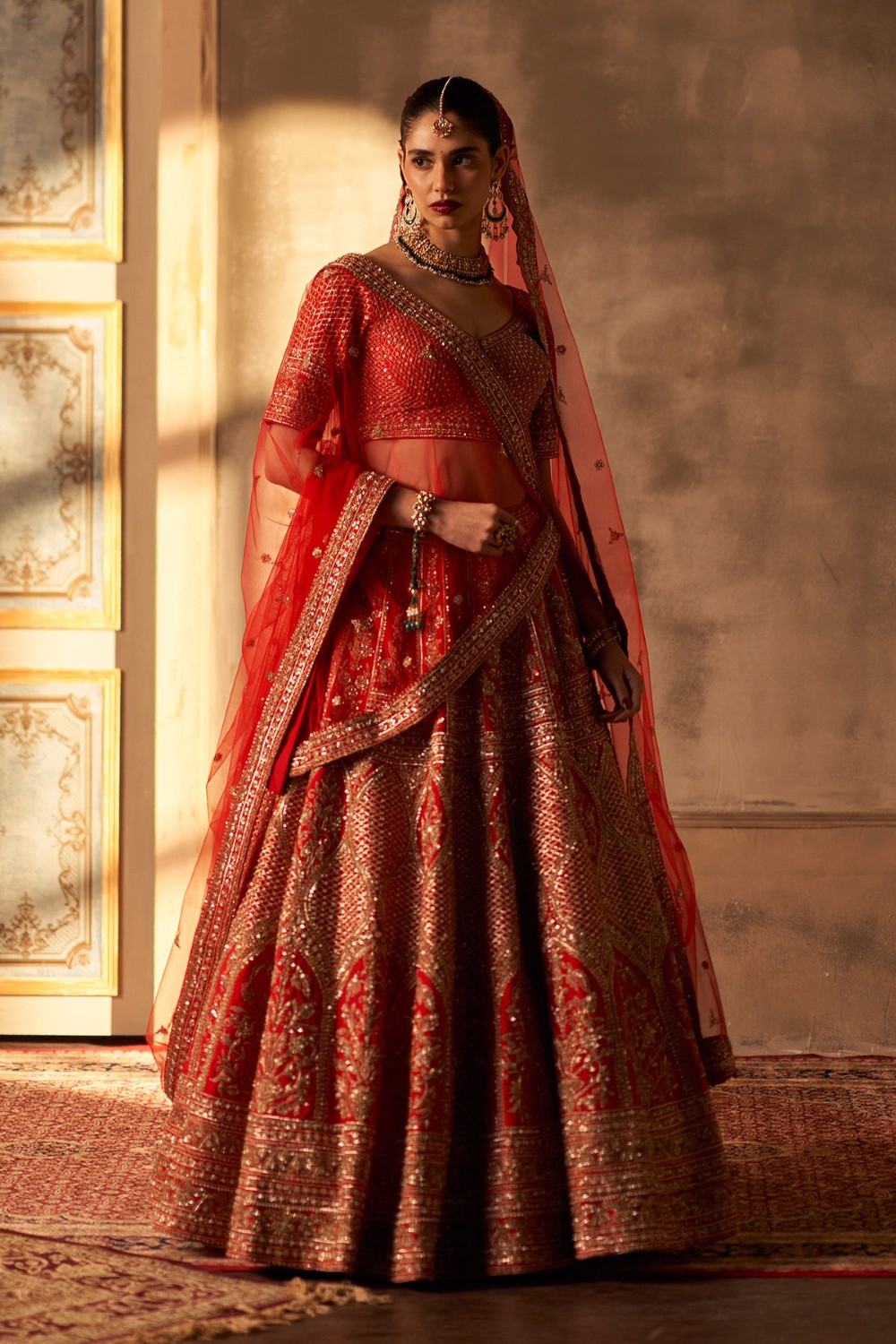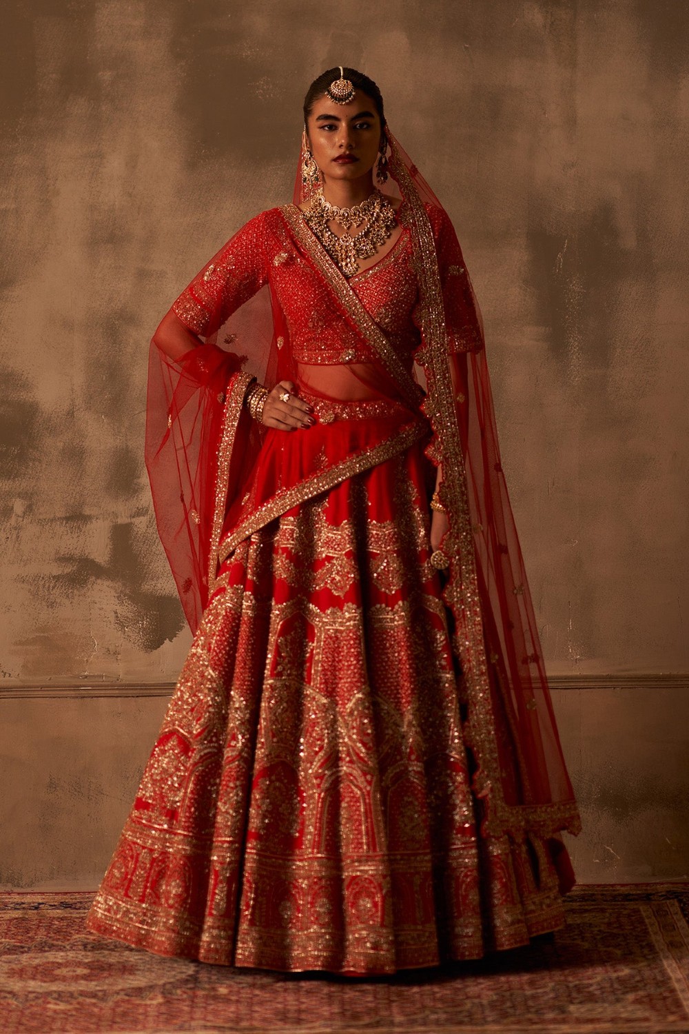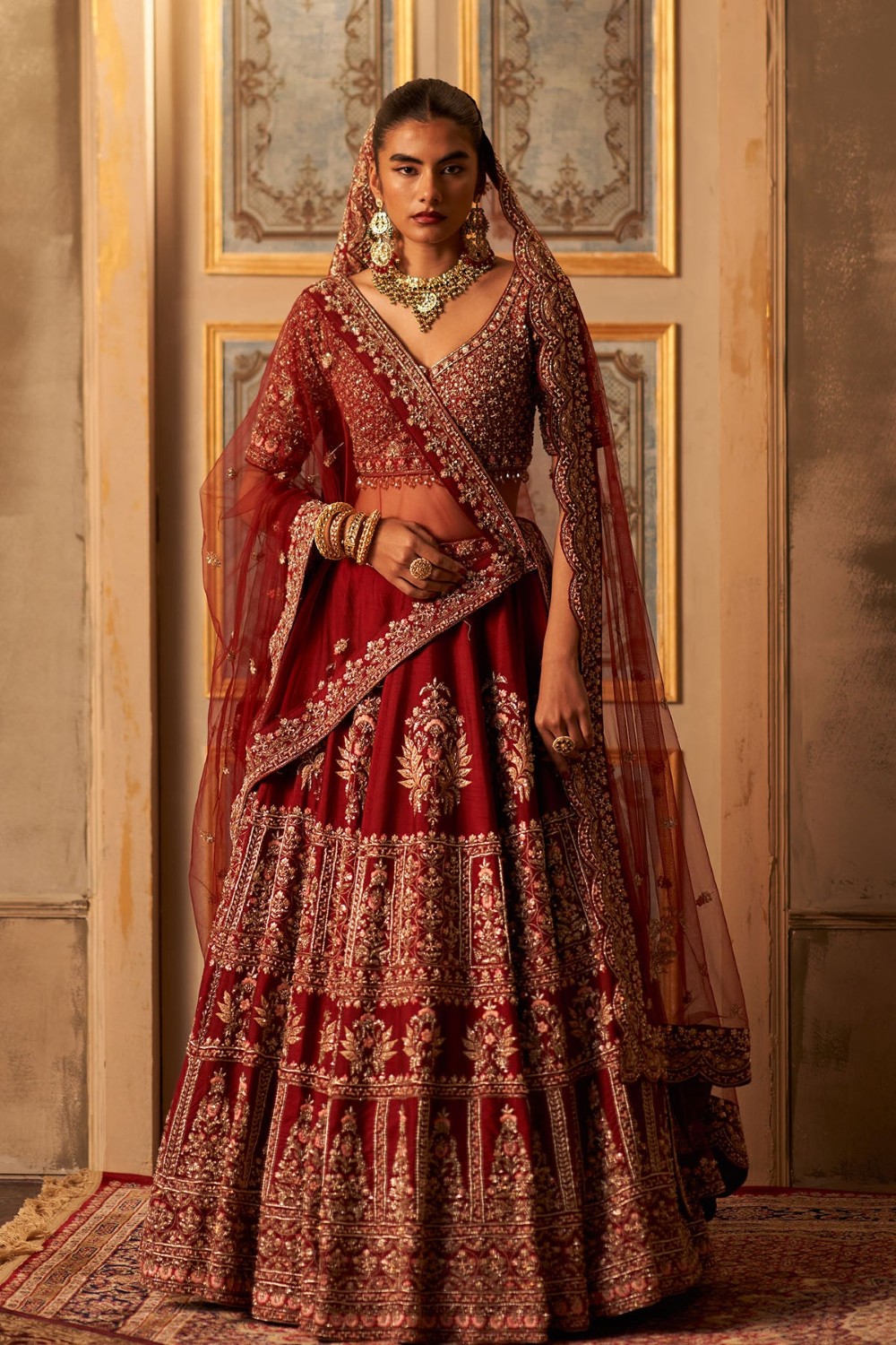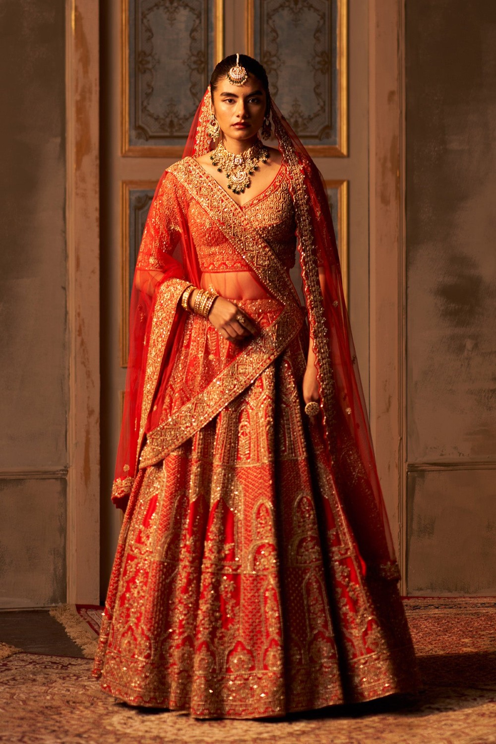 Red Raw Silk Double Dupatta Lehenga Set