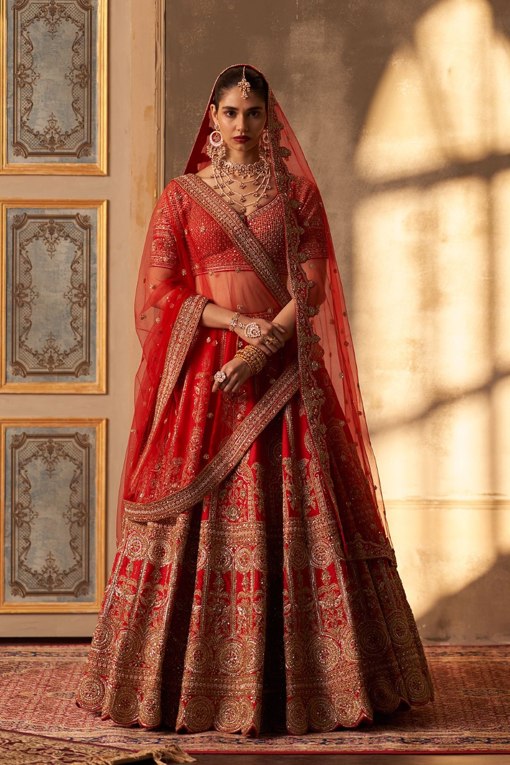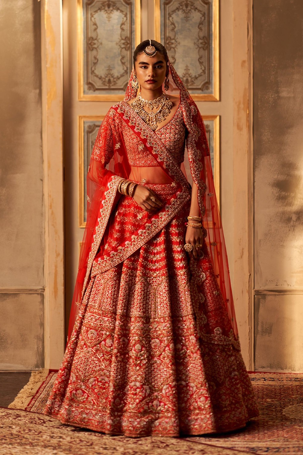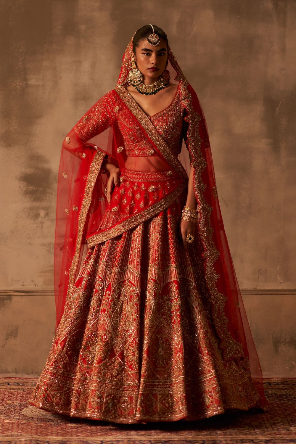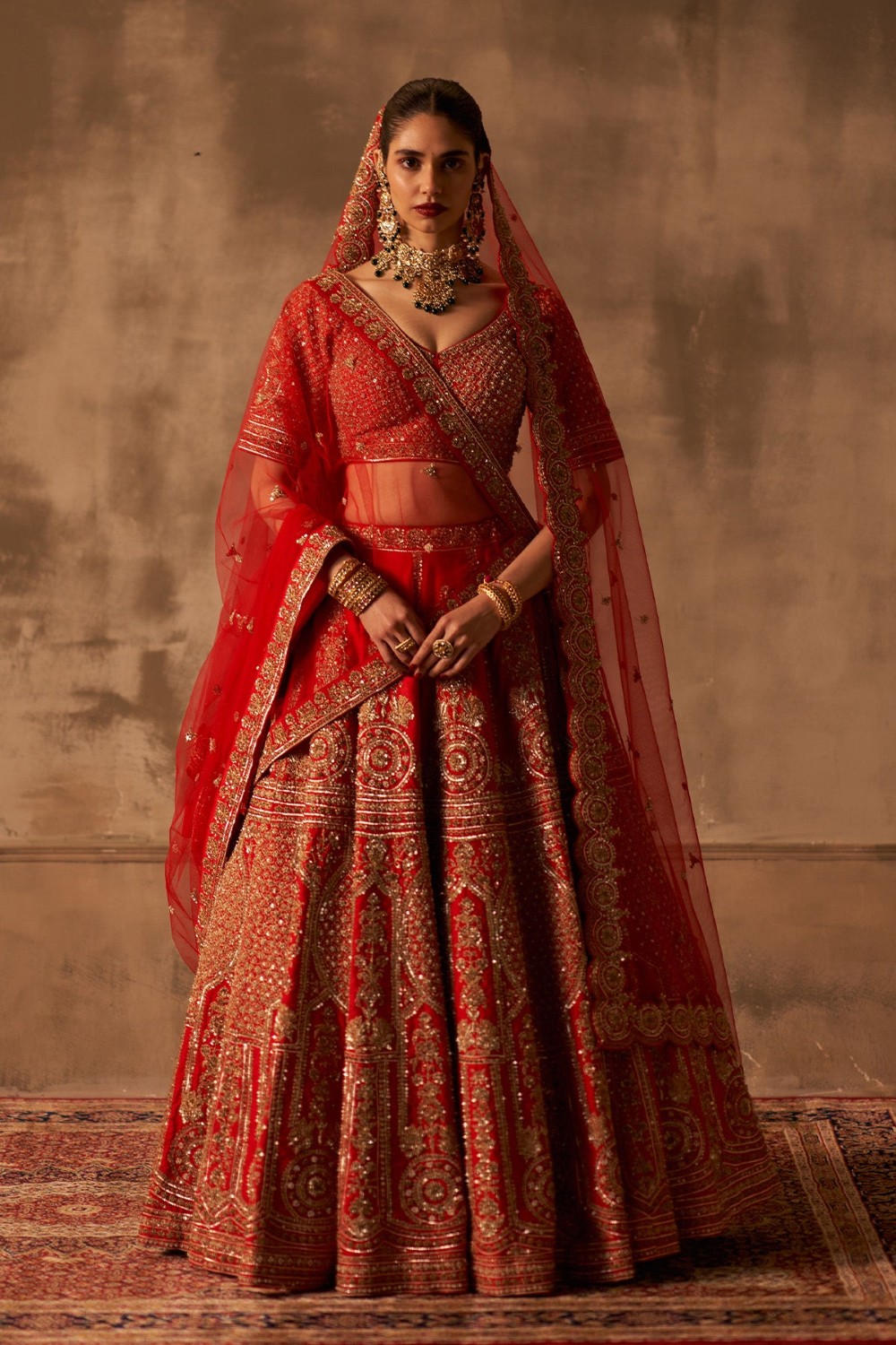 Red Raw Silk Double Dupatta Lehenga Set