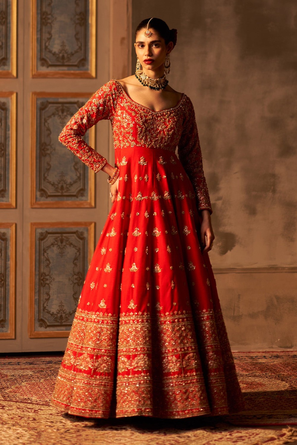 Red Raw Silk Anarkali Set