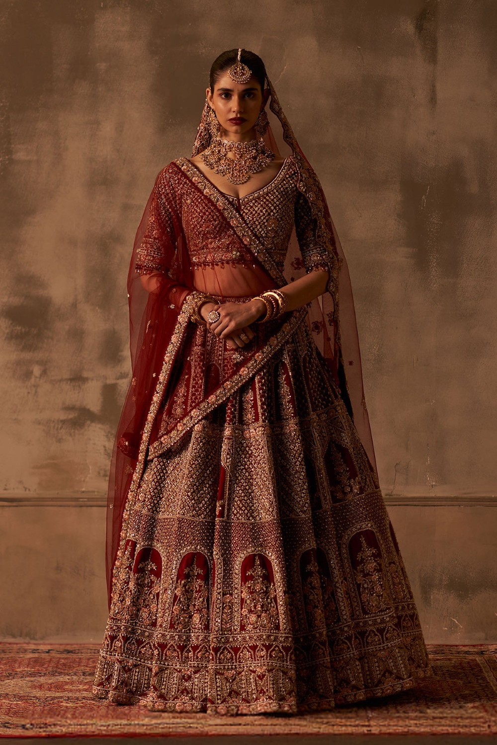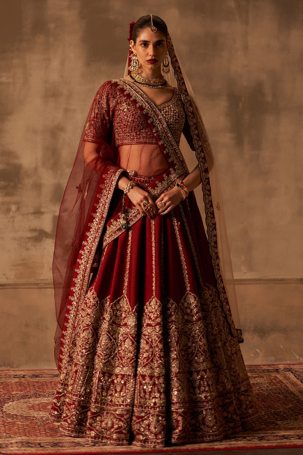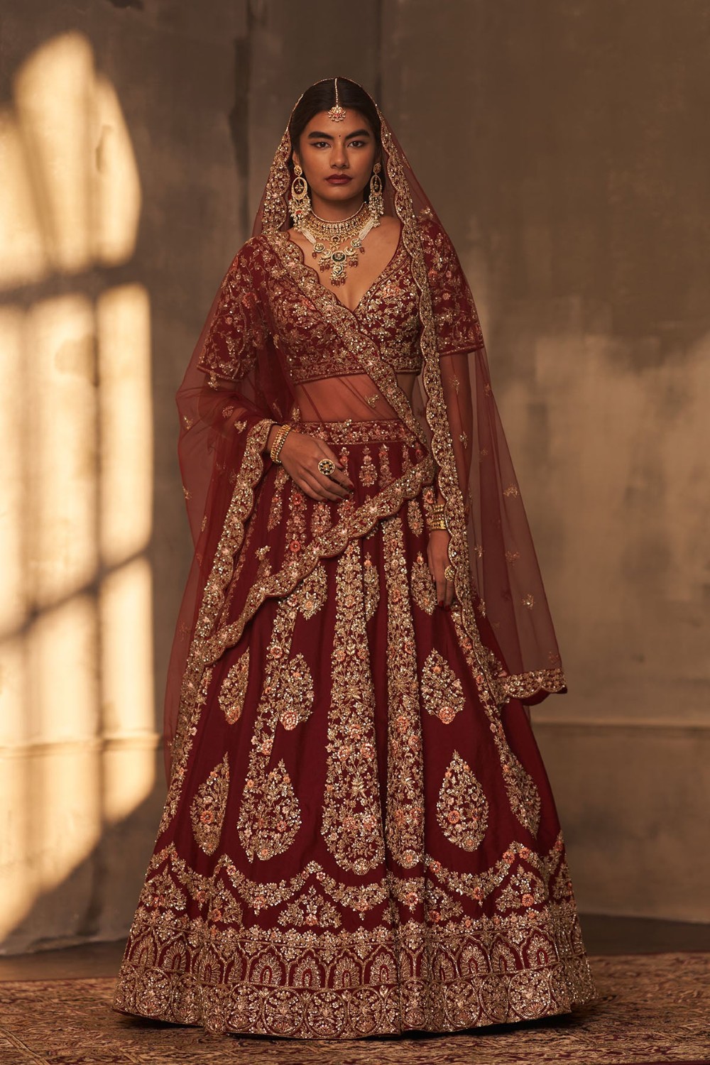 Maroon Raw Silk Double Dupatta Lehenga Set