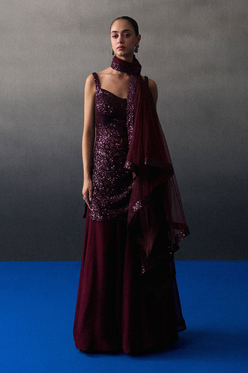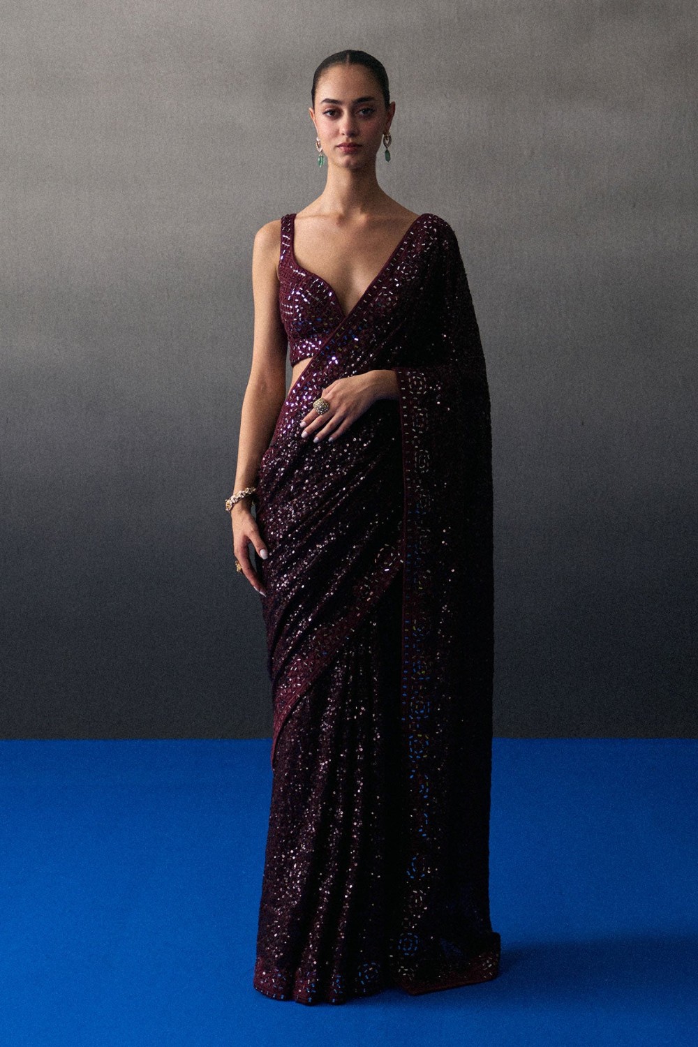 Crimson Sequins Saree