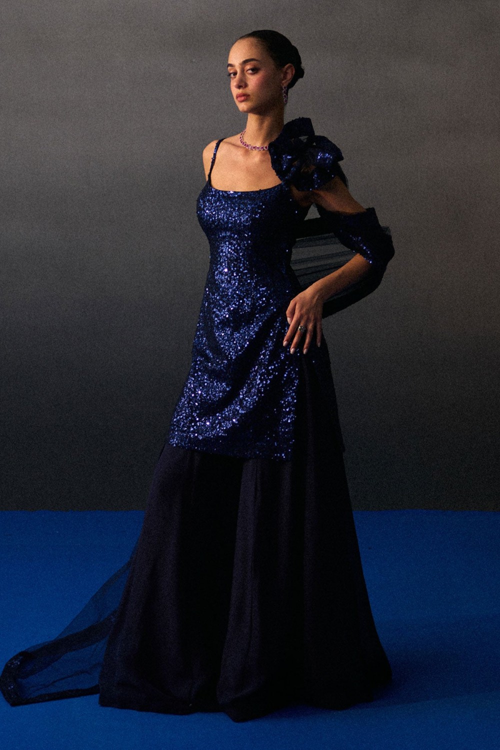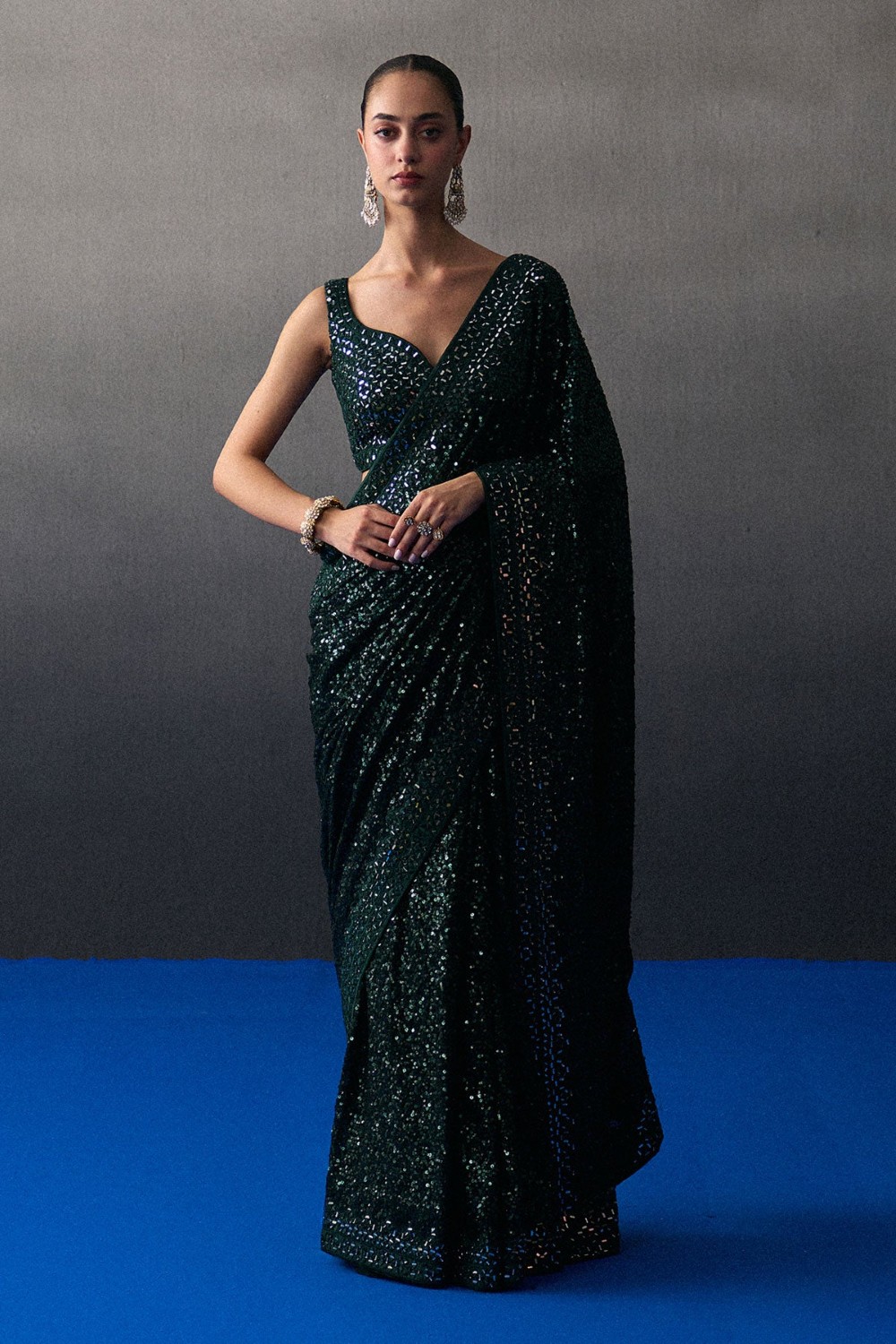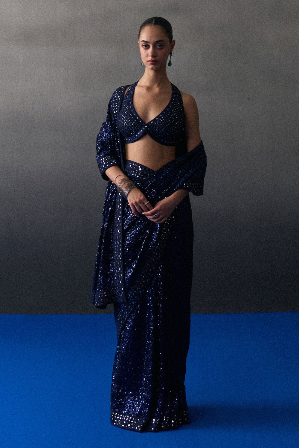Midnight Blue Sequins Saree