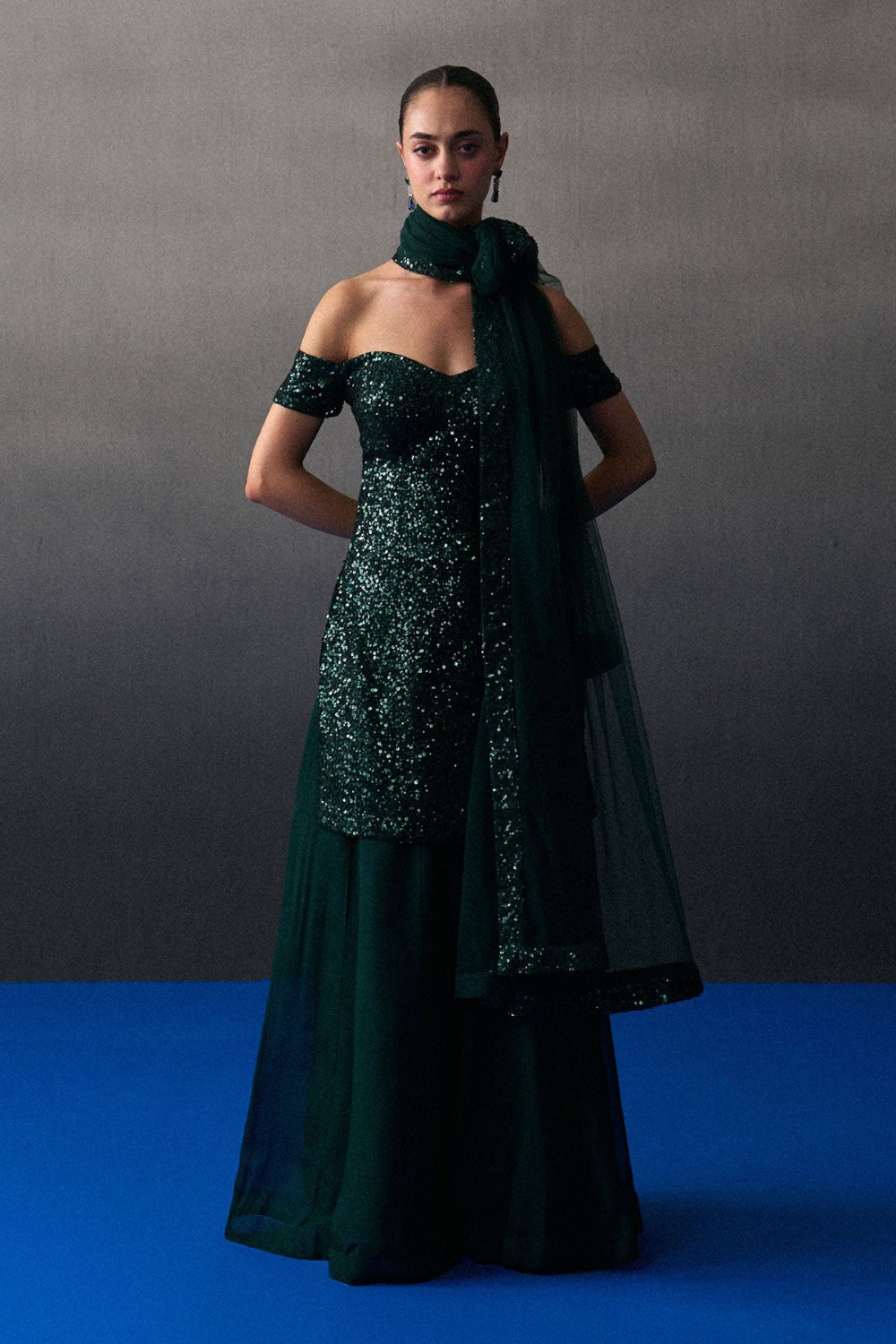 Green Sequins Sharara Set