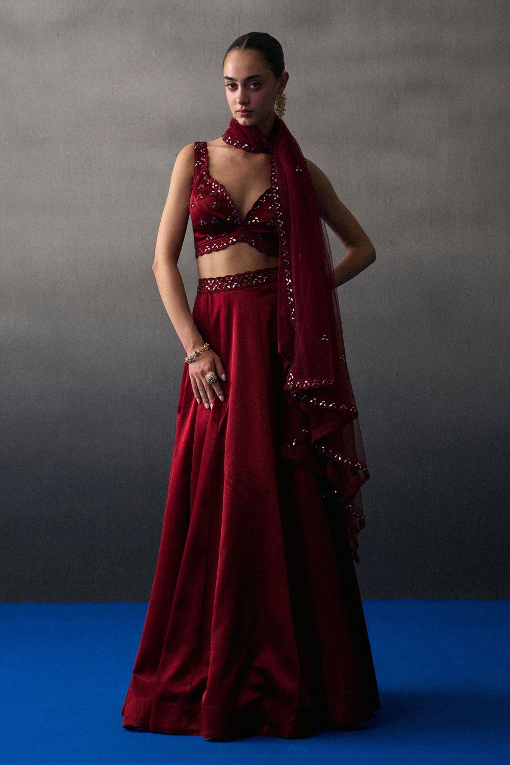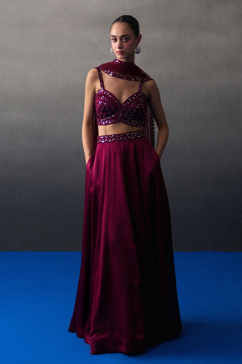 Crimson Sequins Skirt Set