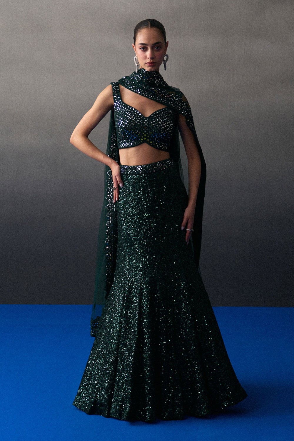 Peacock Blue Sequins Skirt Set